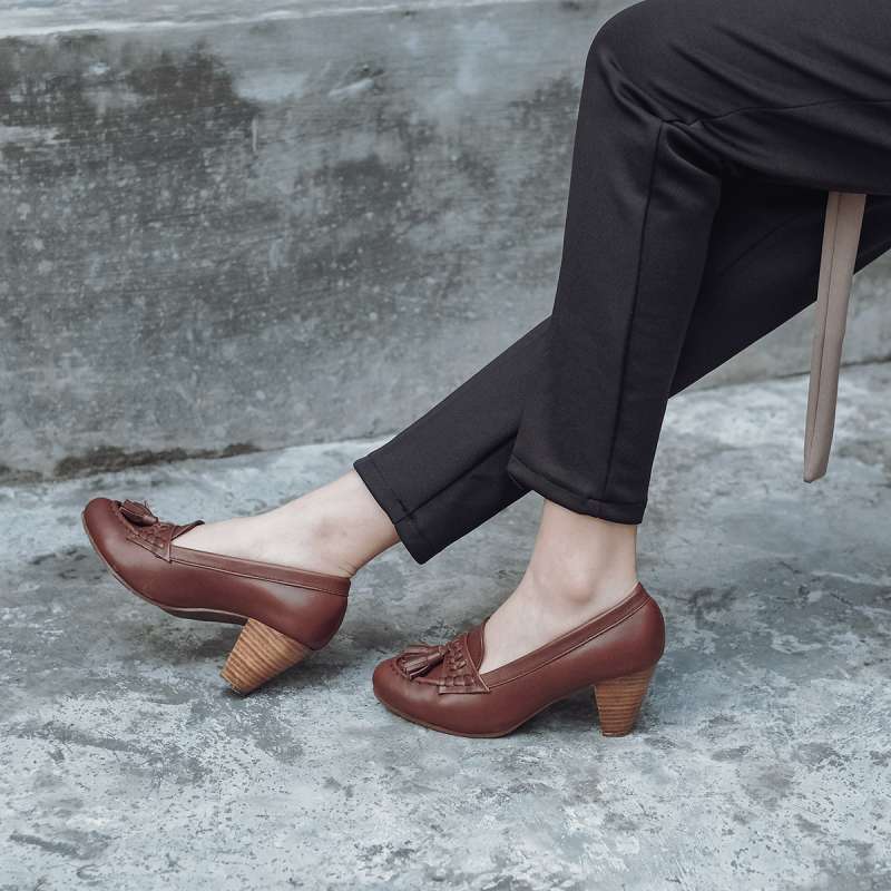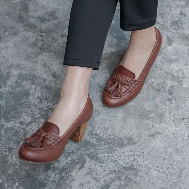 TASSEL HEELS 5CM COGNAC